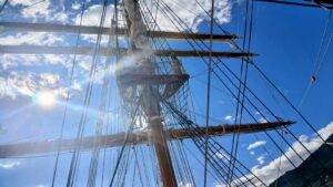 Davanti Piazza Mazzini, alla fonda, si vede l’ospite d’onore della manifestazione. È la goletta Palinuro, nave scuola della Marina Militare Italiana adoperata per l’addestramento degli allievi Sottufficiali. Il suo fascino indiscutibile e la sua eleganza riesce a conquistare anche i cuori di ghiaccio, poco avvezzi a lasciarsi ammaliare dal canto delle sirene.