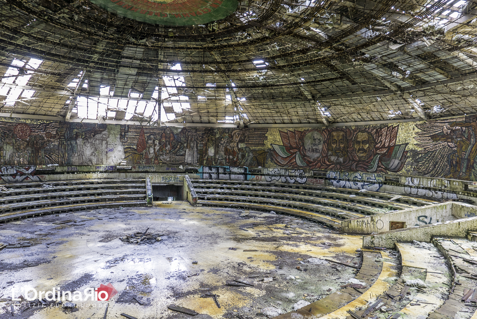 Camminare tra queste macerie è emozionante, commovente. Si percepisce tutta l’energia utilizzata per costruirlo e si possono immaginare i congressi con centinaia di persone svoltisi in questi saloni. Si ha la sensazione di essere nella Storia, viaggiatori nel tempo che camminano attraverso i secoli. Scendere nel grande anfiteatro interno e risalire nel buio delle scale: tutto ricorda i fasti di un tempo perduto che, come sempre, è corretto conoscere per capire. Si ha la chiara sensazione che tutto è temporaneo, non importa quanto sia grandioso, solenne e con forti basi in cemento armato. Ogni idea, potere, epoca, prima o poi finiscono per cambiare e trasformarsi in altro.