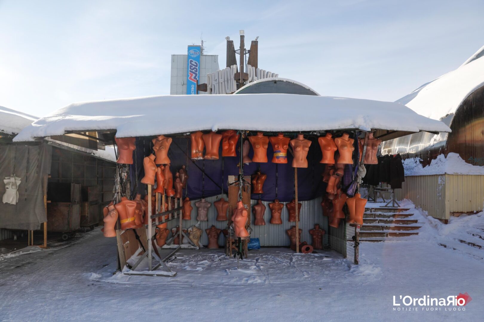 Le giornate passano a camminare e fotografare la città, voglio esplorare le strade, i cortili, i negozi e vedere come scorre la vita ordinaria. Diciamo che a -30°C la vita all’aperto non è proprio vivace. Vado, come di consuetudine nei miei viaggi, al mercato centrale. Esternamente non lavora quasi nessuno, troppo freddo, solo qualche intrepido venditore di abbigliamento propone la sua merce. Internamente si sta meglio e si trovano i prodotti tipici russi. Pomodori, cetrioli, mele, arance, mandarini, insalata, il tutto accompagnato da banconi di latticini dove regna la smetana (crema acida) e il tvorog (una formaggio dalla consistenza simile alla ricotta fresca). Il pesce è praticamente tutto surgelato, non potrebbe essere diversamente, le navi non possono salpare. Salmone, trota, platessa e carpe sono i pesci più comuni e poi il caviale rosso, quello nero è troppo caro, non è acquistabile dalle persone comuni. Qualche bancone di carne e il mercato è tutto qui, c’è tutto l’indispensabile.